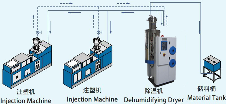 8、封閉式循環除濕及運料系統;