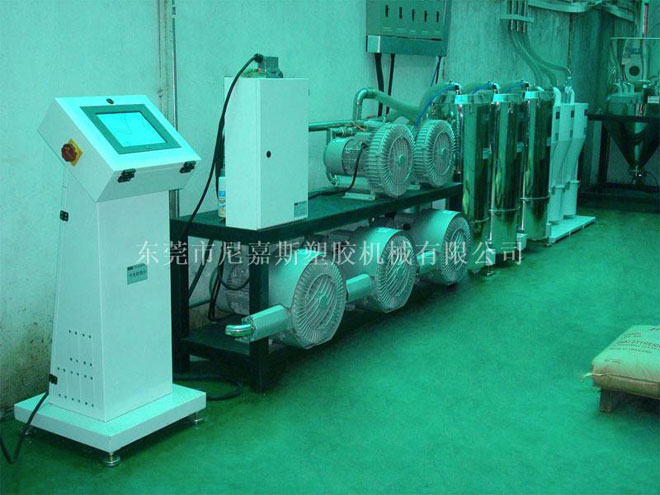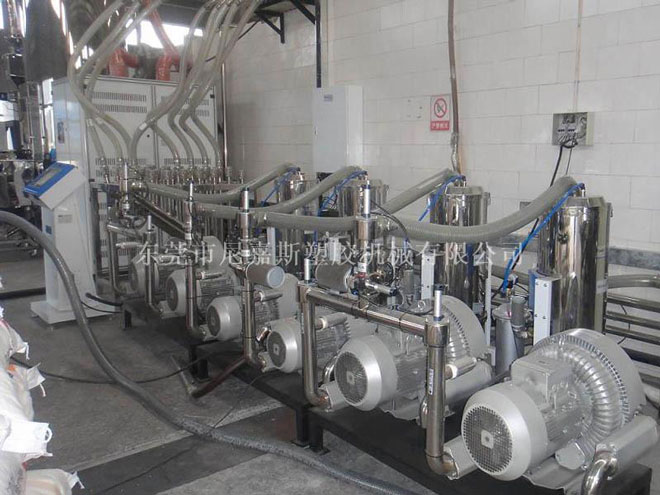 中央供料系統(tǒng)是根據(jù)客戶現(xiàn)場機臺的擺放情況對現(xiàn)場原料的用料情況,結(jié)合特有輔機設(shè)計備而設(shè)計的一種能夠?qū)崿F(xiàn)集中供料、集中控制,從而實現(xiàn)全廠無人化不間斷成型作業(yè)的整體性解決方案。