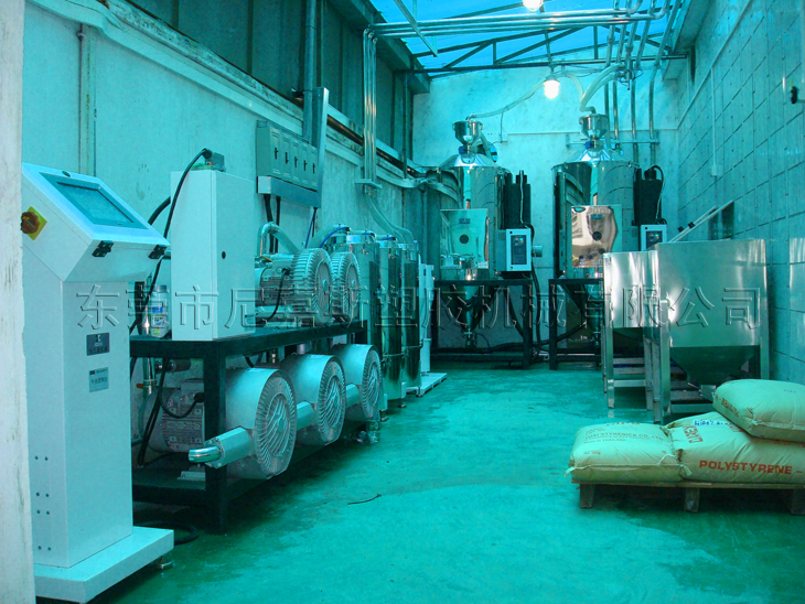 中央供料系統是根據客戶現場機臺的擺放情況對現場原料的用料情況,結合特有輔機設計備而設計的一種能夠實現集中供料、集中控制,從而實現全廠無人化不間斷成型作業的整體性解決方案。