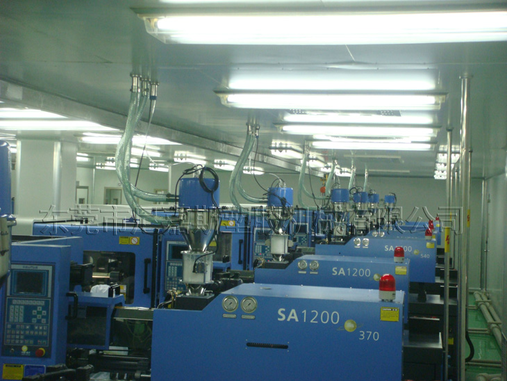 中央供料系統是根據客戶現場機臺的擺放情況對現場原料的用料情況,結合特有輔機設計備而設計的一種能夠實現集中供料、集中控制,從而實現全廠無人化不間斷成型作業的整體性解決方案。