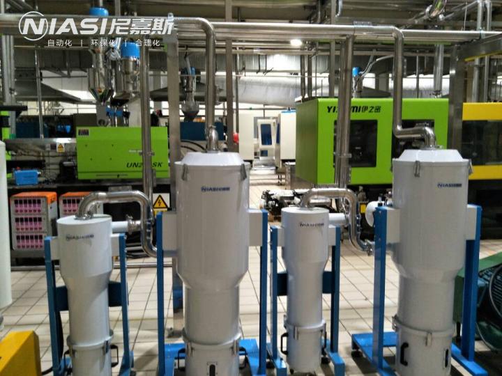 輸送系統:根據客戶提供的輸送量、輸送距離等參數,我司通過真空料斗將原料輸送到干燥機后輸送到注塑機上,每臺機的用料量不同用料種類相同。